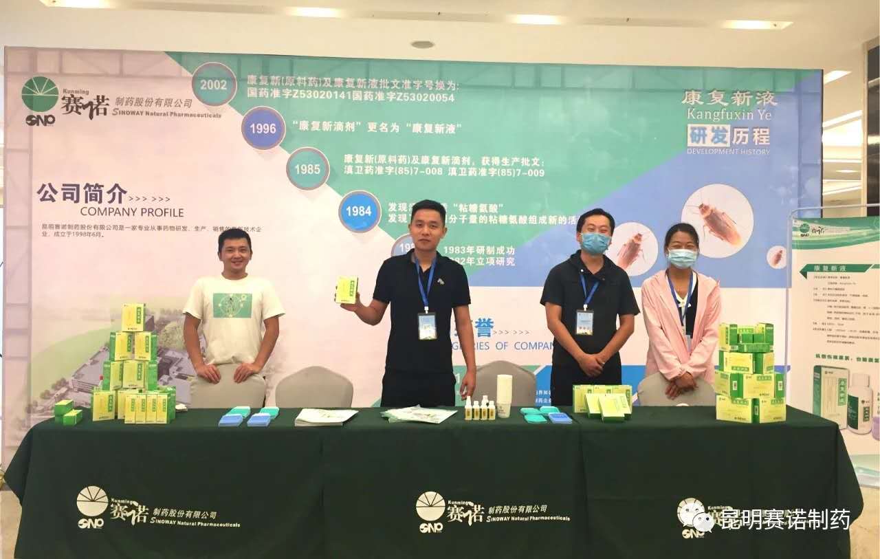 會(huì)議設(shè)置展區(qū)陳列,多家知名藥企匯聚于此,賽諾制藥作為昆明本土企業(yè),向參會(huì)的各方人員,展示了我公司原研產(chǎn)品康復(fù)新液。