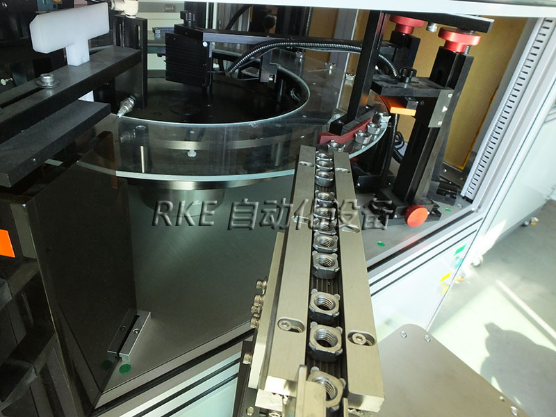 1、自動送料系統:把螺母倒入到振動盤里面,振動盤產生振動波,把產品有序的排列到入料平送器上實現排料入料功能。