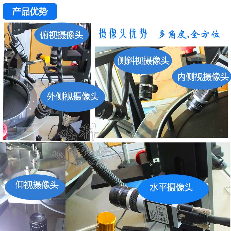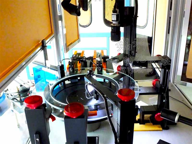 • 本影像篩選系統是用工業CCD攝影機利用玻璃高透光性,物件經振動盤可平穩放置於檢測玻璃盤面皆可檢測。